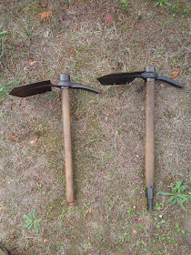 Here is a quick comparison of the Type 1 and Type II style handles (Helves), side-by-side. The same metal head was used on both, so they are interchangeable. Type I on the left, and Type II on the right.